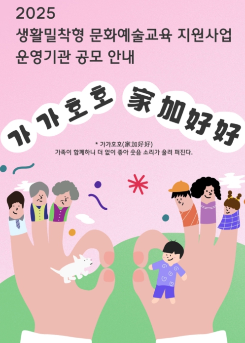 2025 생활밀착형 문화예술교육 지원사업 ‘가가호호(家加好好)’는 오는 5월부터 11월까지 운영되며 교육 참가자 모집 및 세부 일정은 남해군관광문화재단 누리집을 통해 추후 안내할 예정이다.