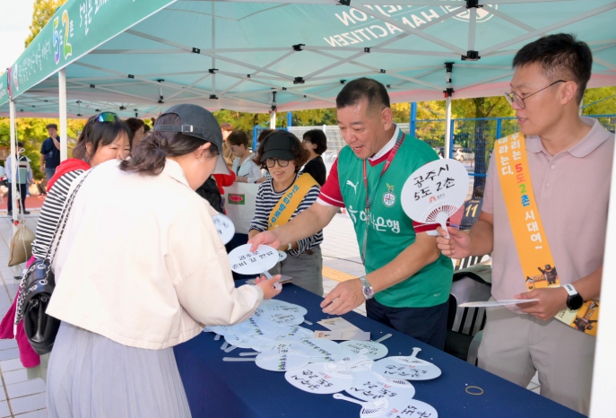 이날 오후 4시부터 남문광장에서 운영된 홍보 부스에는 많은 시민과 축구팬들이 참여해 공주시의 주요 정책과 특산물, 축제를 체험하며 공주를 새롭게 알아보는 시간을 가졌다.