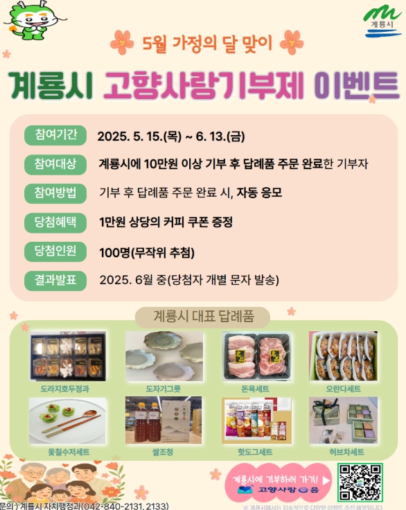 | ▲ 계룡시, ‘5월 가정의 달 맞아 고향사랑기부제 이벤트’ |