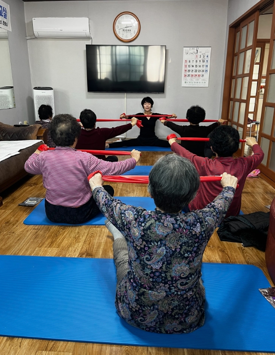 주 2~3회 탄력 밴드 운동, 균형감 향상 훈련 등으로 구성됐으며, 특히 고령층의 근감소증 예방과 낙상 위험 감소를 목표로 설계된 점이 특징이다.