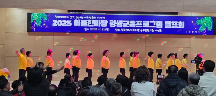 [무한뉴스=정민정 기자] 충주시노인복지관은 지난 27일 동부분관에서 노인들의 1년간 학습 성과를 나누고 지역사회와 함께하는 화합의 장인 ‘2025 어울한마당 평생교육프로그램 발표회’를 성황리에 개최했다고 밝혔다.