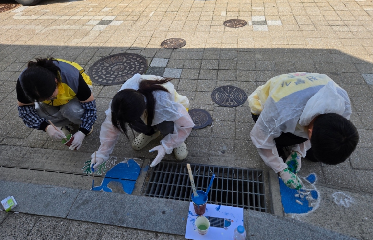 이후 거리로 나가 “담배꽁초 NO!, 빗물받이는 바다의 시작!”과 같은 메시지를 담은 그림을 빗물받이와 주변에 직접 그려 넣으며 환경보호의 중요성을 시각적으로 전달했다.