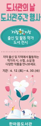 전시는 4월 12부터 30일까지 한마음도서관 2층 로비에서 진행되며 거창 출신 대표 작가인 신길자, 신용목 작가를 포함해 30여 명 작가의 간단한 약력 소개와 시, 수필, 소설, 웹툰 등 다양한 분야의 도서 80여 권이 전시된다.