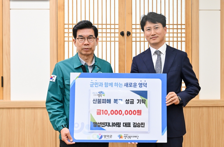 김광열 영덕군수는 “전국 각지에서 보내주신 따뜻한 마음과 응원이 산불 피해복구에 실질적인 원동력이 되고 있다”며, “기탁하신 성금과 물품이 피해자 지원과 지역 재건에 소중히 사용될 수 있도록 애쓰겠다”고 고마움을 전했다.