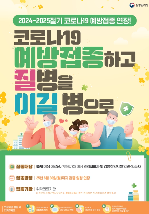 23일 감염병대응센터에 따르면 여름철 코로나19 재유행 가능성에 대비해 2024~ 2025절기 예방접종 사업을 오는 6월 30일까지 연장 운영한다.