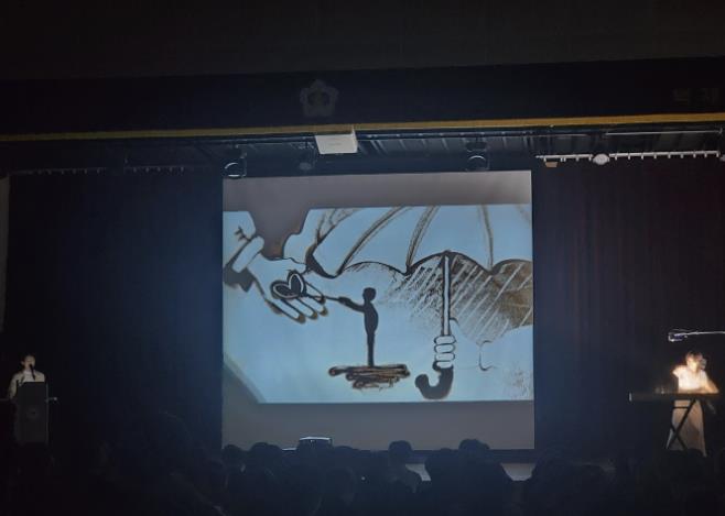 모래를 매개로 한 예술적 표현에 영상과 음악이 어우러진 무대는 생명의 소중함과 생명 존중의 의미를 학생들이 자연스럽게 느낄 수 있도록 구성됐으며, 특히 감성적인 예술 매체인 샌드아트를 활용해 학생들의 흥미를 높이고 메시지 전달력을 극대화했다.