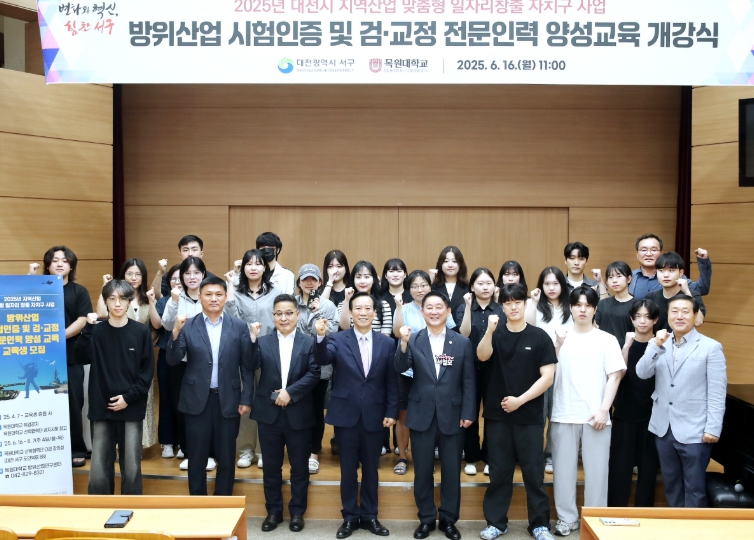 [무한뉴스=정민정 기자] 대전 서구는 지난 16일 목원대학교에서 교육생 23명이 참석한 가운데‘방위산업 시험 인증 및 검·교정 전문 인력 양성 과정’ 개강식을 개최했다.