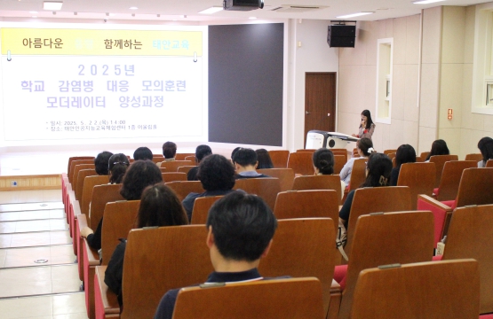 [무한뉴스=정민정 기자] 충청남도태안교육지원청은 지난 22일 청사 어울림홀에서 초·중·고등학교 감염병 업무 담당 교사 30명을 대상으로 ‘2025년 학교 감염병 위기대응 모의훈련 모더레이터 양성과정 연수’를 실시했다.