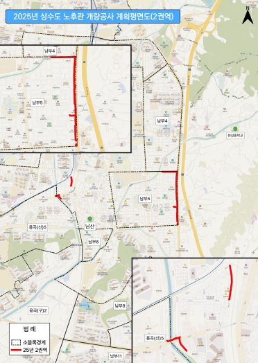 시는 지난해 상수도관망기술진단 결과에 따라 1권역(신부동 524번지~ 원성동 610번지)과 2권역(원성동 613번지~ 구성동 490번지) 내에 매설돼 있는 30년이 초과한 노후관을 대상으로 개량공사를 추진한다.