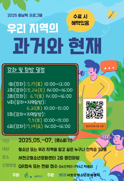 김묘왕 관장은 “이번 프로그램을 통해 지역 청소년들이 우리 서천에 대한 자긍심을 갖고, 더 나아가 지역 경쟁력 향상에도 도움이 되길 기대한다”고 밝혔다.