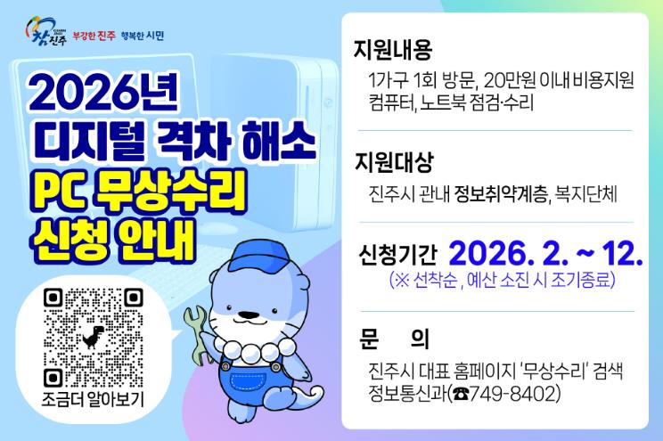 [무한뉴스=최진수 기자] 진주시는 정보 취약계층의 디지털 격차를 해소하기 위해 ‘컴퓨터(PC) 무상수리 지원사업’ 신청을 받는다고 밝혔다.