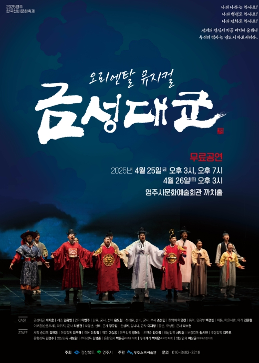 한편, 2025 ‘뮤지컬 금성대군’ 공연은 선착순 무료로 관람할 수 있으며, 자세한 사항은 영주시청 문화예술과로 문의하면 된다.