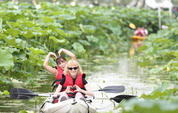 ‘연지 카누 체험’은 연꽃이 피어 있는 궁남지 위에서 카누를 타며 연못의 풍경을 감상할 수 있는 색다른 경험을 제공한다.