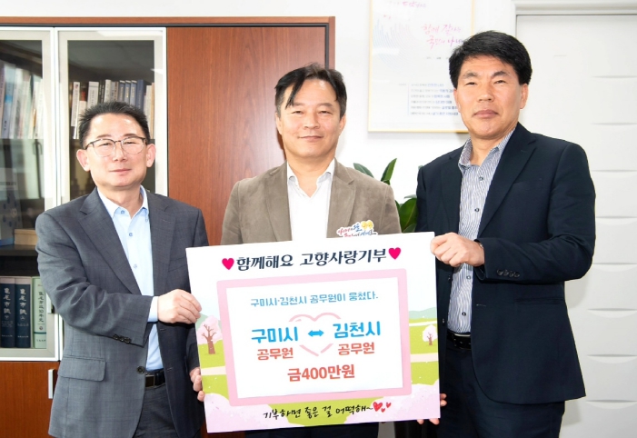 [무한뉴스=최진수 기자] 구미시와 김천시는 지난 22일 고향사랑기부제의 활성화와 두 지역 간 상생협력을 위해 고향사랑기부금 400만 원을 상호기부했다