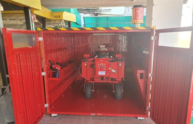 이동식 소방펌프는 지난 9월 5일 전통시장에 배치된 장비로, 도로가 협소해 소방차량 진입이 어려운 전통시장과 상가 밀집지역에서 화재 발생 시 신속한 초기 진압에 활용된다.