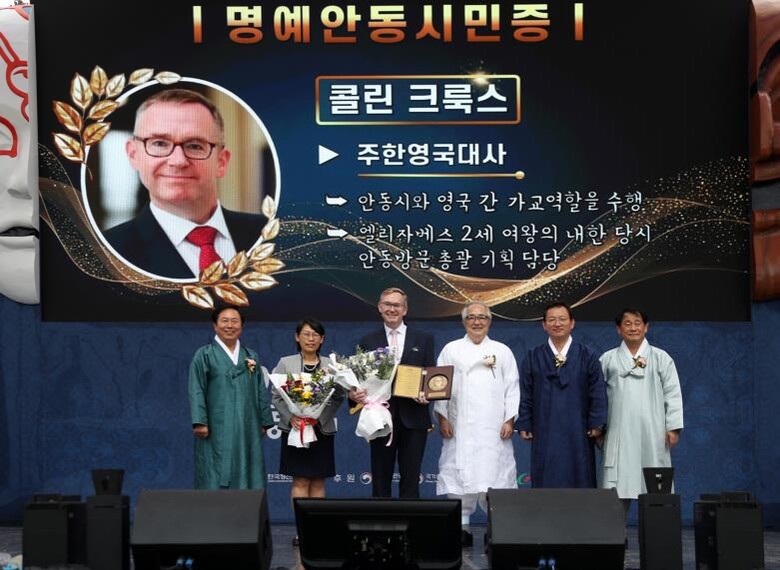콜린 크룩스 주한영국대사는 “이제는 명예 안동시민으로서 한층 특별한 의미를 갖게 됐다”며 “오늘은 가족에게도 뿌리로 돌아온 날”이라고 밝혔다. 그는 아내의 고향이 안동임을 언급하며, 안동시민의 따뜻한 환대에 감사의 뜻을 전했다.
