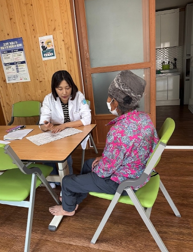 | ▲ 치매안심센터 전문인력과 함께 치매조기검진을 하고 있다. |
