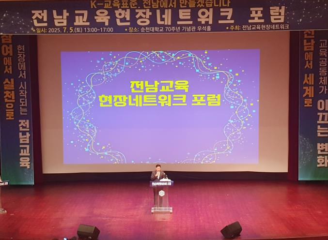 [무한뉴스=정민정 기자] 전라남도의회 김정희 교육위원장은 2025년 7월 5일 순천대학교 70주년 기념관 우석홀에서 열린 ‘전남교육 현장네트워크 포럼’에 참석해, 전남교육의 미래와 혁신을 위한 강한 의지를 밝혔다.