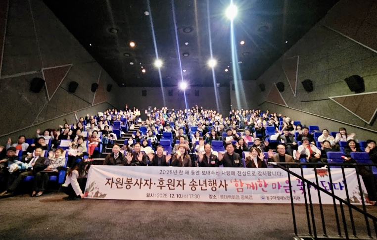 1부 기념식에서는 보건복지부 표창 재수상과 동구청장 표창, 복지관장 표창이 이어지며 봉사자와 후원자들의 노고에 감사인사를 전했고, 장기간 꾸준히 봉사활동에 참여해 온 봉사자들에게 봉사배지를 수여하며 그간의 헌신을 격려했다. 이어진 2부에서는 영화 ‘정보원’을 함께 관람하며 웃음과 감동을 나누는 시간을 가졌다.