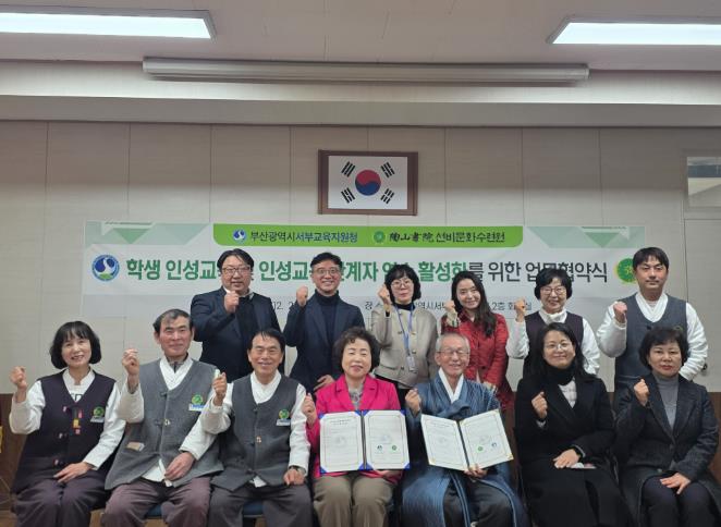 [무한뉴스=최진수 기자] 부산광역시서부교육지원청은 지난 24일 오후 서부교육지원청에서 경북 안동시 도산서원 선비문화수련원과 ‘전통문화체험기관 연계 인성교육 프로그램’을 위한 업무협약을 체결했다고 밝혔다.