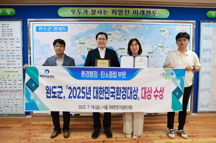[무한뉴스=정민정 기자] 완도군이 지난 7월 18일 서울 국회 헌정기념관에서 열린‘ 제20회 2025 대한민국 환경 대상’ 시상식에서 환경 행정 탄소중립 분야의 대상을 수상하는 영예를 안았다.