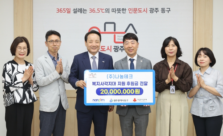 [무한뉴스=정민정 기자] 광주 동구는 23일 ㈜나눔테크(대표 최무진)가 사회복지공동모금회를 통해 총 2천만 원의 후원금을 기부했다고 밝혔다.