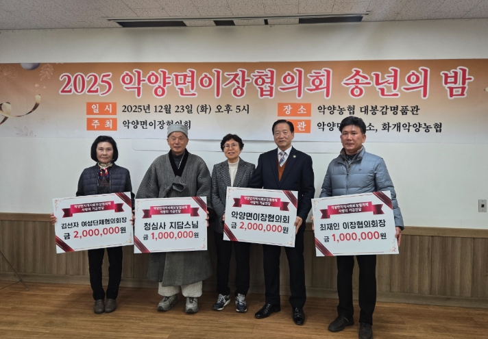 악양면은 이장협의회를 비롯한 여성단체협의회 김선자 회장, 최재인 이장협의회장, 청심사 지담스님, 익명의 기부자 등이 총 700만 원의 기부금을 전달했다고 밝혔다.