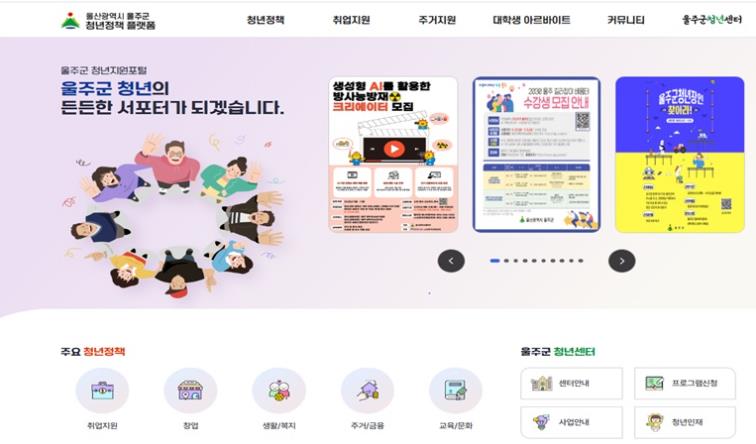 울주군에서 시행하는 모든 청년정책 정보를 제공하고, 신청과 참여가 가능한 원스톱 온라인 서비스로 구현됐다.