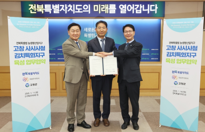 | ▲ 고창 사시사철 김치특화지구 육성 업무협약(전북도, (주) 대상, 고창군) |