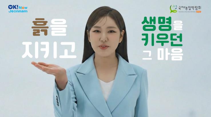 영상 속에서 송가인 특유의 구수한 어투와 따뜻한 눈빛으로 ‘대한민국 농업, 세계로 가야죠!’, ‘전남도 나주에서 만나요~!’라고 외치는 모습은 국내외 관람객의 이목을 집중시키기에 충분하다.