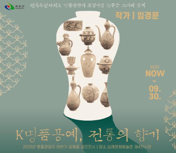 [무한뉴스=정민정 기자] 완주군이 오는 9월 30일까지 2025년 명품관광지 하반기 공예품 공모전시 당선작 전시 ‘K-명품 공예, 전통의 향기展’을 삼례문화예술촌 제4전시관에서 개최한다.