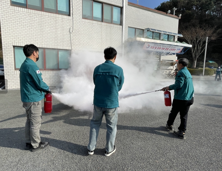 훈련 종료 후에는 소방대원들의 지도하에 소화기 사용법에 대한 실전 체험 교육도 함께 진행됐다.