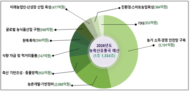 [무한뉴스=최진수 기자] 경상북도는 농축산유통 분야 2026년 예산안을 전년(1조 1,096억원) 대비 2.15%(238억) 증가한 1조 1,334억원 규모로 편성했다고 밝혔다.