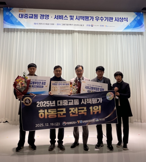 [무한뉴스=최진수 기자] 하동군은 지난 19일 서울 그랜드힐컨벤션에서 열린 ‘2025년 대중교통 시책평가 시상식’에서 전국 76개 군 단위 지방자치단체 가운데 종합 1위를 차지하며 국토교통부 장관상을 수상했다.