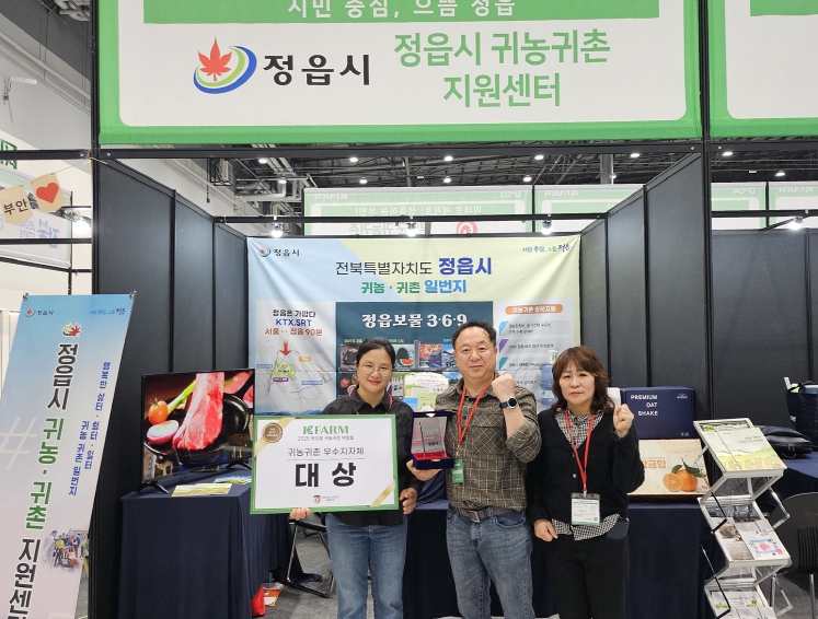 [무한뉴스=정민정 기자] 정읍시가 지난 14일부터 16일까지 3일간 경기도 수원시 수원메쎄에서 열린 ‘2025년 케이팜(K-Farm) 박람회’에 참가해 귀농귀촌 분야 대상을 수상하는 영예를 안았다.