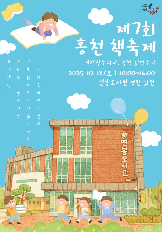 [무한뉴스=정민정 기자] 홍천군은 10월 18일 10:00~16:00 연봉도서관 정원에서 ‘제7회 홍천 책축제(슬로건: 책식주의자, 폭싹 읽었수다)’를 개최한다.