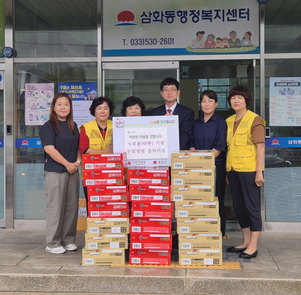 [무한뉴스=정민정 기자] 한화생명 금융서비스 동해지점(지점장 지종탁)에서 지난 17일 삼화동행정복지센터를 방문하여 라면 2종 20박스를 어려운 이웃들에게 전달해달라며 기탁했다.