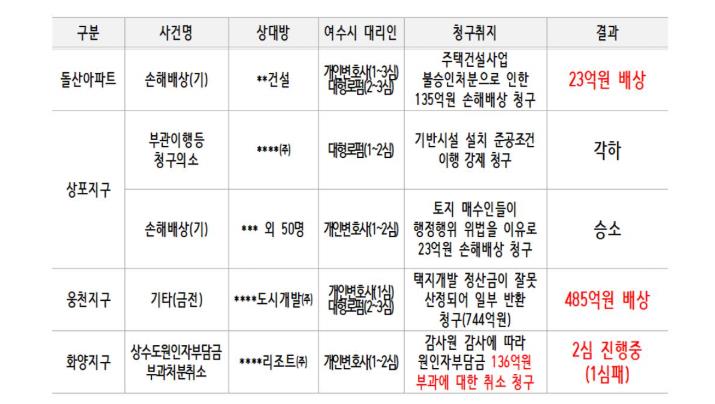 [무한뉴스=정민정 기자] 여수시 행정소송이 최근 5년 사이 크게 늘면서 시민 혈세 낭비는 물론, 시정 신뢰도 하락으로 이어지고 있다는 지적이 제기됐다.