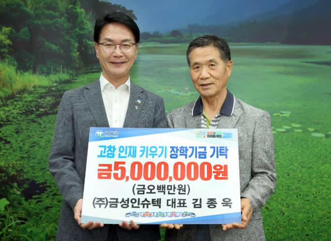 고창군 김종욱 금성인슈텍 대표, 지역인재 육성 장학금 500만원 기탁