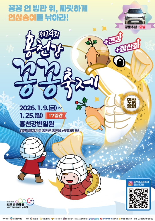 [무한뉴스=정민정 기자] 제14회 홍천강 꽁꽁축제가 오는 1월 9일부터 1월 25일까지 17일간 홍천 강변 일원에서 열린다.