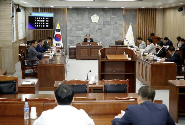 또한, 청사 건립과 관련된 안건도 비중 있게 논의됐다. 재무과는 '2025년도 청사건립기금 운용계획안'을 통해 총 1,000억 원 규모의 기금을 조성해 군 청사 신축 재원을 안정적으로 확보하겠다는 계획을 보고했으며, 올해는 1회 추경 및 정리 추경을 통해 10억 원을 우선 편성할 예정이라고 밝혔다. 이어 보고된 '다목적 홍농읍사무소 신축 계획에 따른 부지매입 계획안'에서는 준공된 지 40년이 지난 기존 청사의 노후화와 공간 부족 문제를 개선하기 위해, 인근 부지 9필지(총 5,865㎡)를 매입해 주민자치센터와 복지 기능을 포함한 다목적 행정복합시설로 신축하겠다는 계획이 설명됐다.