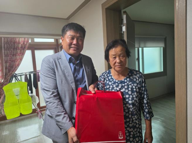 이번 위문은 6.25 전쟁에 참전해 다리에 총상을 입고 전상군경으로 등록된 故김삼현님의 배우자 박금화 씨를 대상으로 진행됐으며, 홍삼세트 등으로 구성된 위문품이 전달됐다.