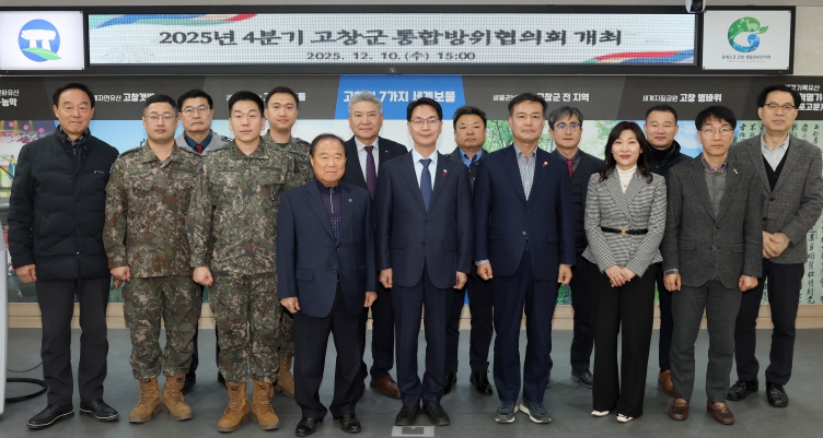 [무한뉴스=정민정 기자] 고창군이 지난 10일 군청 2층 회의실에서 ‘2025년 4분기 통합방위협의회’를 열고, 2025년 운영성과와 2026년 운영계획을 보고하고 2026년 민방위 실시계획을 심의했다.