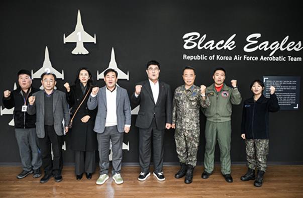 [무한뉴스=정민정 기자] 삼척관광문화재단이 삼척의 주요 축제에서 화려한 에어쇼로 시민과 관광객들에게 잊지 못할 감동을 선사한 대한민국 공군 특수비행팀 ‘블랙이글스’를 직접 찾아 감사의 뜻을 전했다.
