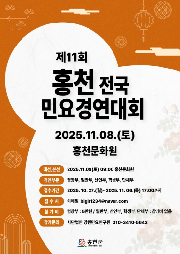 [무한뉴스=정민정 기자] 홍천군은 11월 8일 홍천문화원에서 ‘제11회 전국민요경창대회’를 개최한다고 밝혔다.