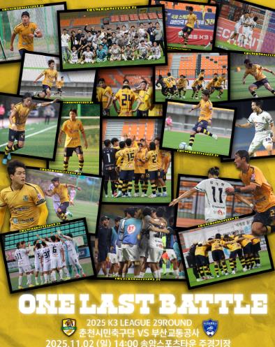 [무한뉴스=정민정 기자] 춘천시민축구단의 2025 시즌 마지막 홈경기가 오는 11월 2일 오후 2시 송암스포츠타운에서 열린다.