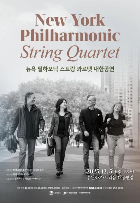[무한뉴스=양현명 기자] 수원문화재단은 오는 12월 5일 금요일 오후 7시 30분, 수원SK아트리움 대공연장에서 ‘뉴욕 필하모닉 스트링 콰르텟 내한공연’을 개최한다.