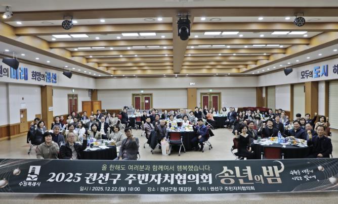 [무한뉴스=양현명 기자] 권선구 주민자치협의회는 2025년 12월 22일 오후 6시, 권선구청 대회의실에서 '2025 권선구 주민자치협의회 송년회'를 개최했다.