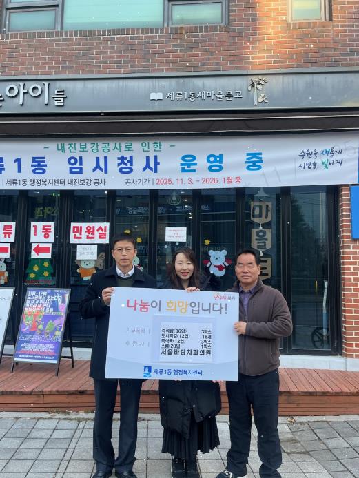 선병옥 세류1동 동장은 “작년에 이어 올해 연말에도 지역 어르신들을 위해 따뜻한 마음을 전해주신 서울바담치과의원 이지연 원장님께 진심으로 감사드린다”며 “정성껏 준비해 주신 식료품 꾸러미는 독거어르신들께 큰 위로와 도움이 될 것”이라고 감사의 뜻을 전했다.
