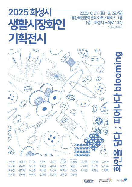 [무한뉴스=정승훈 기자] 화성시문화관광재단은 화성특례시 대표 수공예 아트마켓 ‘생활시장화인’을 재단과 함께 이끌어가는 시민운영자 37인의 기획전시 ‘화인을 담다 ; 피어나다 blooming’을 6월 21일(토)부터 6월 29일(일)까지 동탄복합문화센터 아트스페이스에서 개최한다.